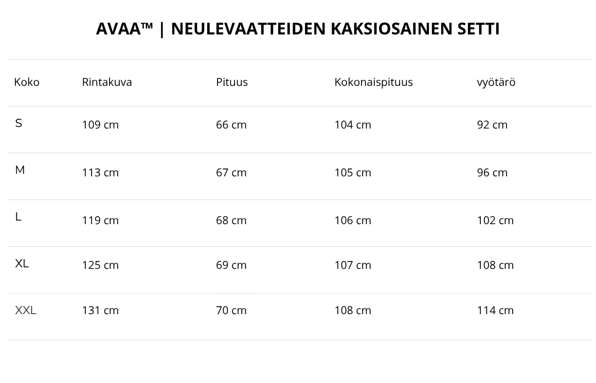 Miksi valita Avaa™ Neulevaatteiden kaksiosainen setti?